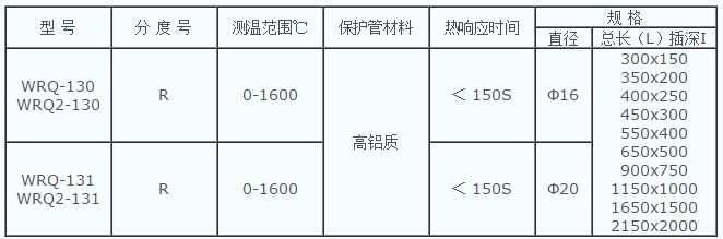 鉑銠13-鉑(R型熱電偶)為貴金屬熱電偶。偶絲直徑規定為0.5mm,允許偏差-0.015mm,其正極(RP)的名義化學成分為鉑銠合金,其中含銠為13%,含鉑為87%,負極(RN)為純鉑,長期最高使用溫度為1300℃,短期最高使用溫度為1600℃。