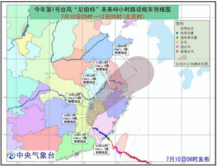 今年第1號臺風(fēng)“尼伯特”已于今天(10日)凌晨3點鐘在福建省寧化縣境內(nèi)減弱熱帶低壓,早晨5點鐘其中心位于福建省寧化縣境內(nèi),就是北緯26.1度、東經(jīng)116.5度,中心附近最大風(fēng)力有7級(16m/s),中心最低氣壓為997百帕。